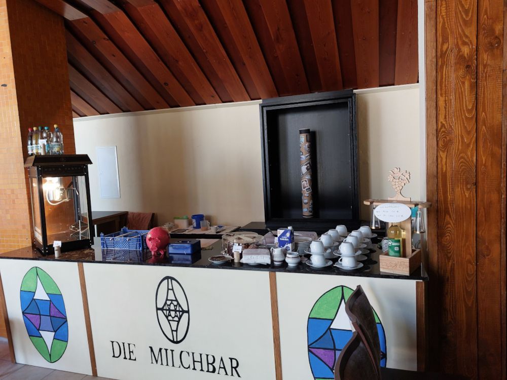 Mit großen, staunenden Augen wurde der Raum in Besitz genommen. Alle waren begeistert, was aus der alten neuen Milchbar geworden ist. Besonderen Zuspruch fand das große Wandgemälde.